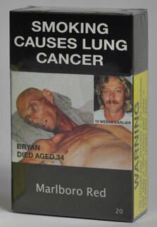 Australia goes full send on plain packaging laws (2012). They slap Bryanâs before/after pics on random ciggie packs: left side healthy Bryan smiling, right side skeleton-mode Bryan on deathbed, looking like he FOMOâd into the wrong altcoin at ATH.